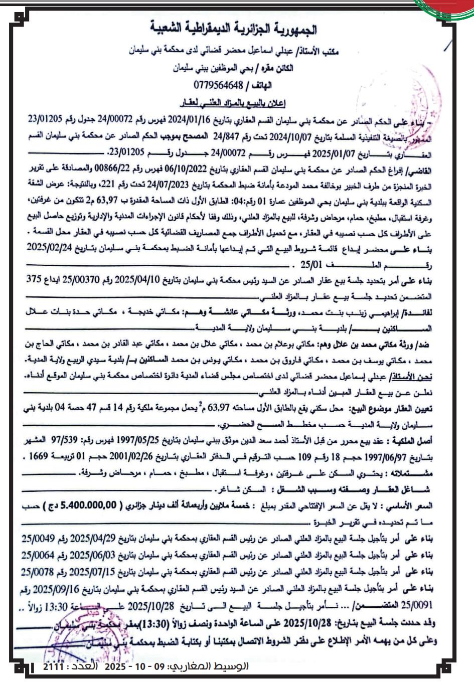 Il sera procédé à la vente au plus offrant et dernier enchérisseur le :