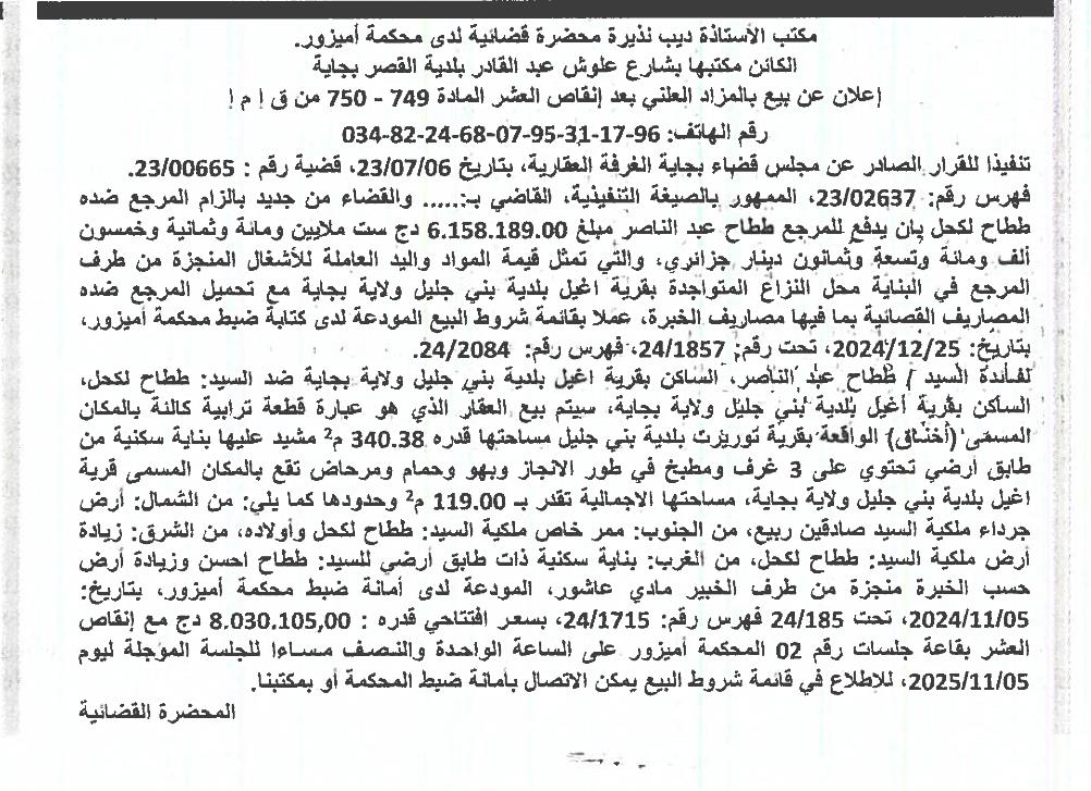 Il sera procédé à la vente au plus offrant et dernier enchérisseur le :