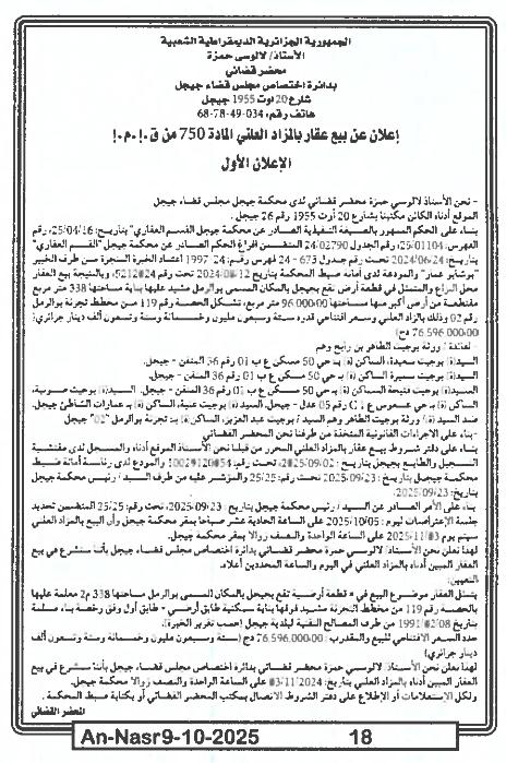 Il sera procédé à la vente au plus offrant et dernier enchérisseur le :