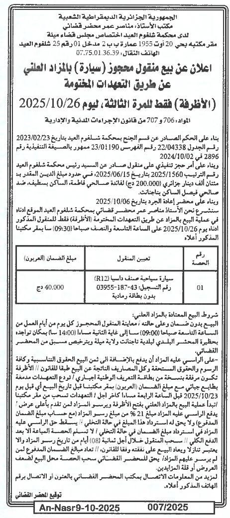 Il sera procédé à la vente au plus offrant et dernier enchérisseur le :