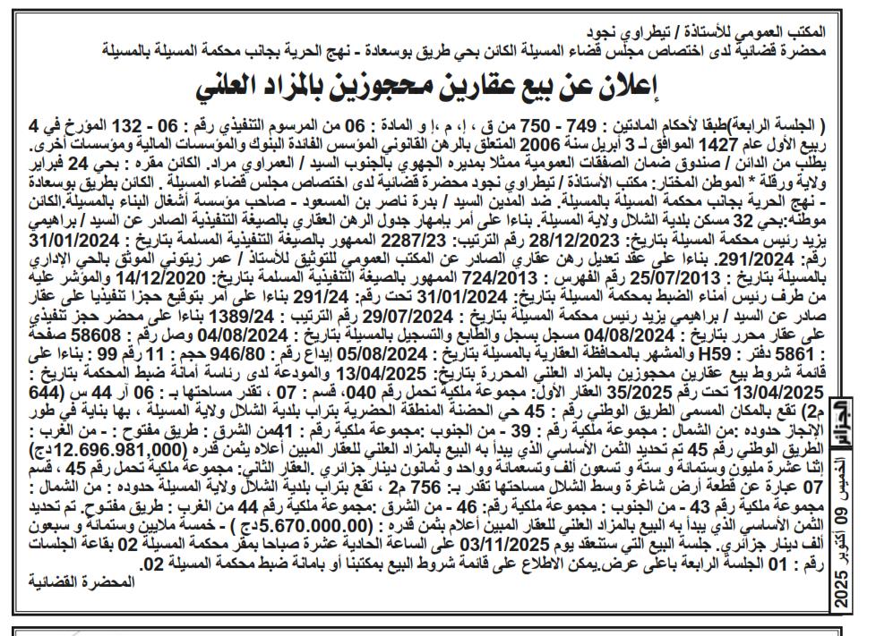 Il sera procédé à la vente au plus offrant et dernier enchérisseur le :