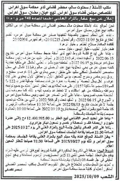 Il sera procédé à la vente au plus offrant et dernier enchérisseur le :