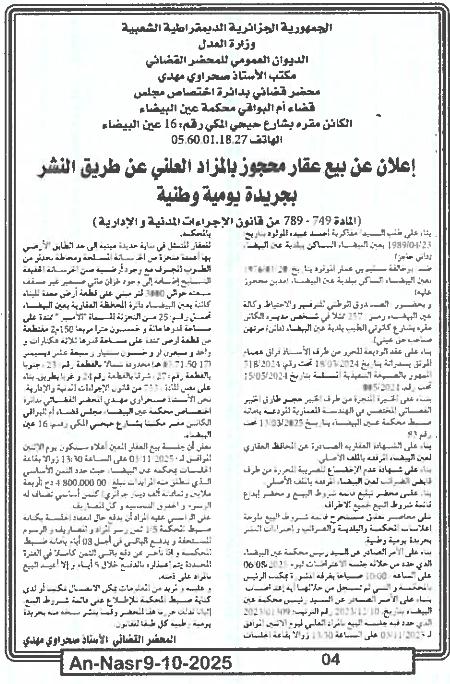 | Paru dans le journal : النصر | |