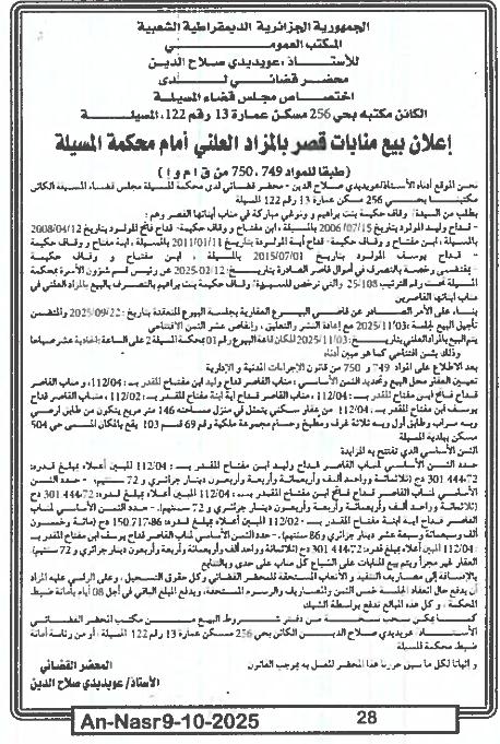 Il sera procédé à la vente au plus offrant et dernier enchérisseur le :