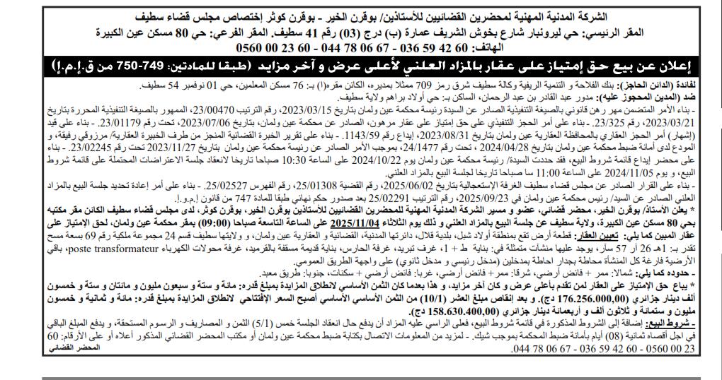 Il sera procédé à la vente au plus offrant et dernier enchérisseur le :