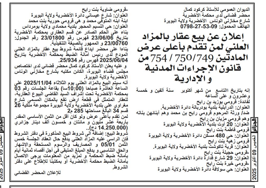 Il sera procédé à la vente au plus offrant et dernier enchérisseur le :