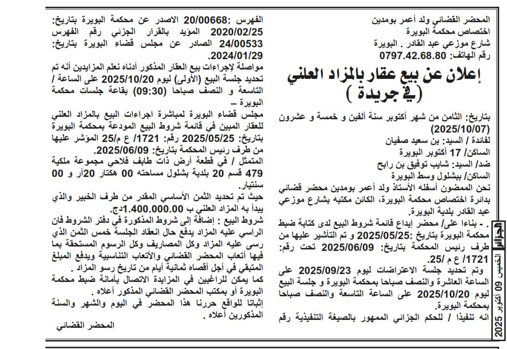 | Paru dans le journal : الجزائر | |