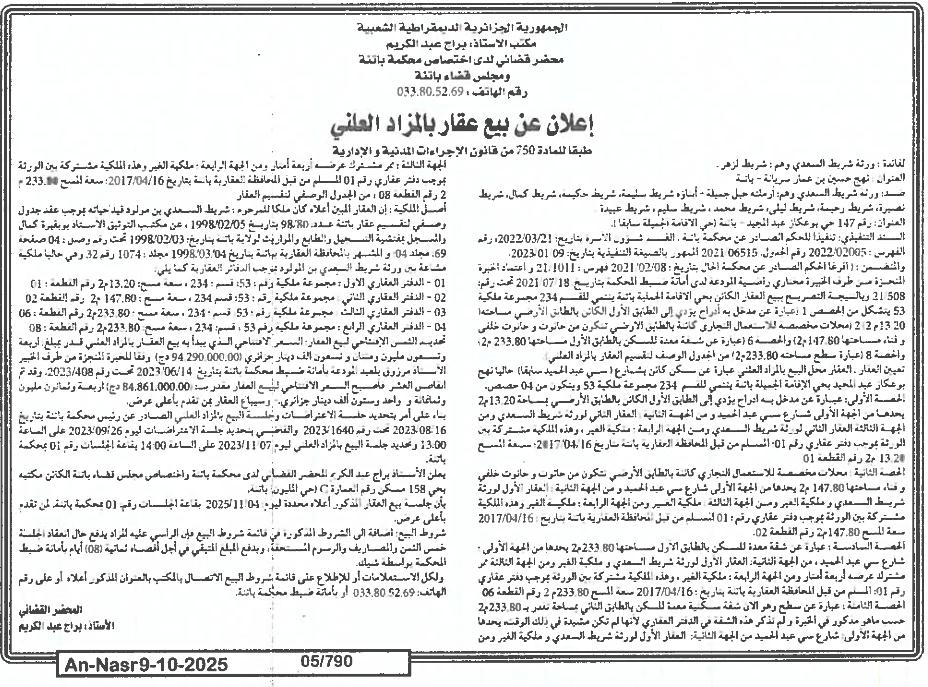 Il sera procédé à la vente au plus offrant et dernier enchérisseur le :