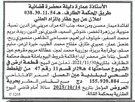 Il sera procédé à la vente au plus offrant et dernier enchérisseur le :