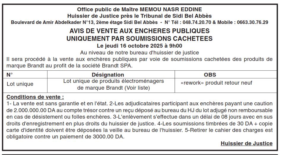 Il sera procédé à la vente au plus offrant et dernier enchérisseur le :