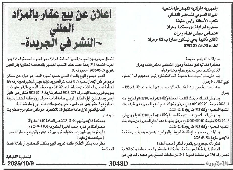 Il sera procédé à la vente au plus offrant et dernier enchérisseur le :