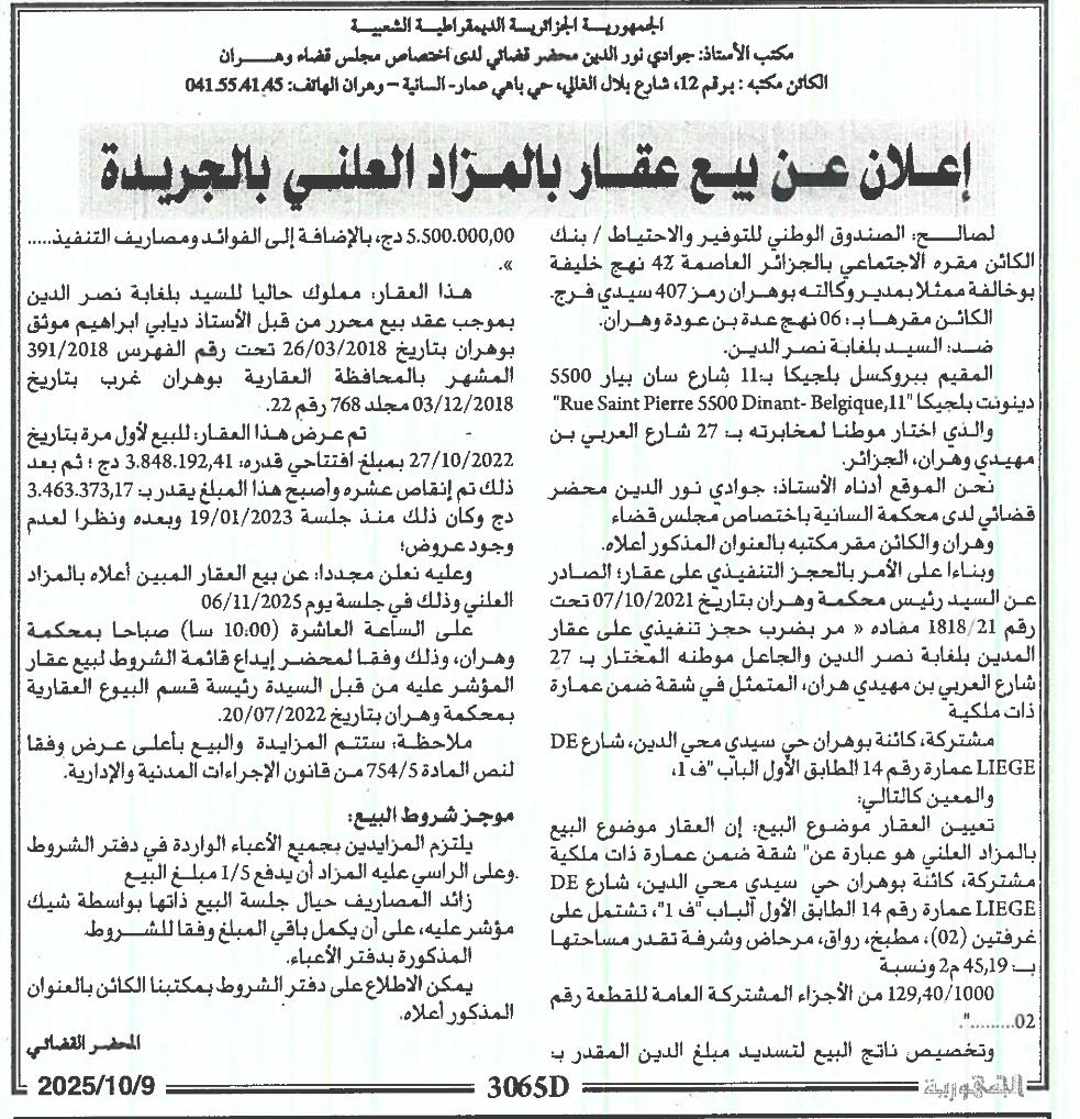 Il sera procédé à la vente au plus offrant et dernier enchérisseur le :