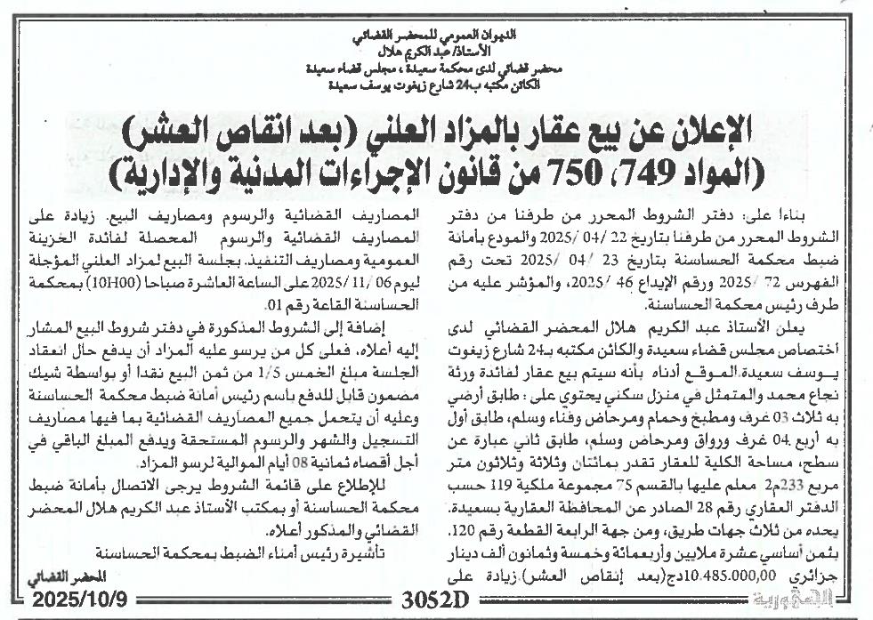Il sera procédé à la vente au plus offrant et dernier enchérisseur le :