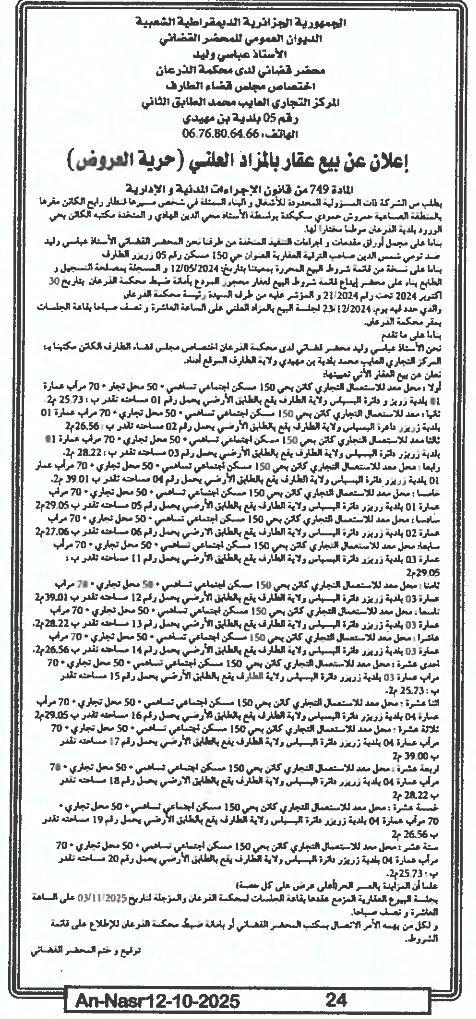 Il sera procédé à la vente au plus offrant et dernier enchérisseur le : 03/11/2025