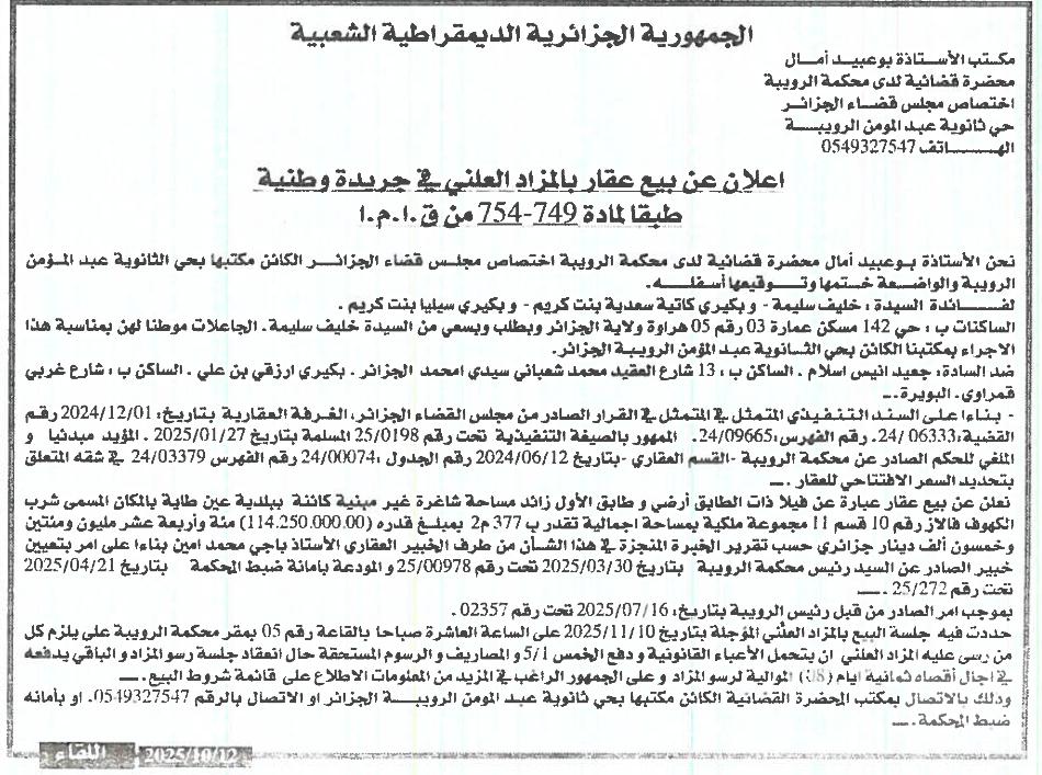 Il sera procédé à la vente au plus offrant et dernier enchérisseur le :