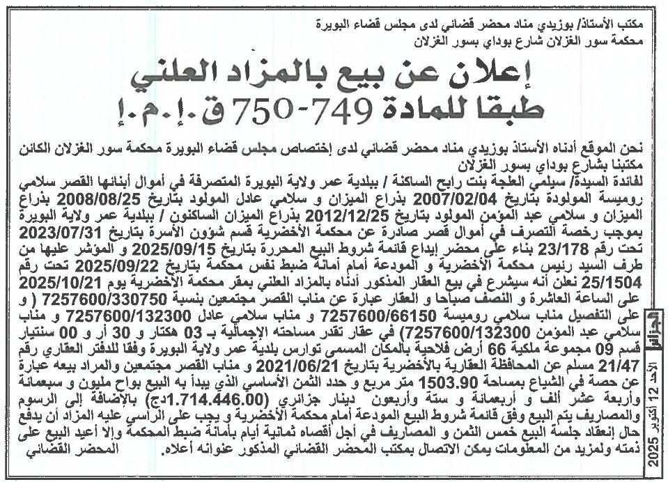 Il sera procédé à la vente au plus offrant et dernier enchérisseur le :