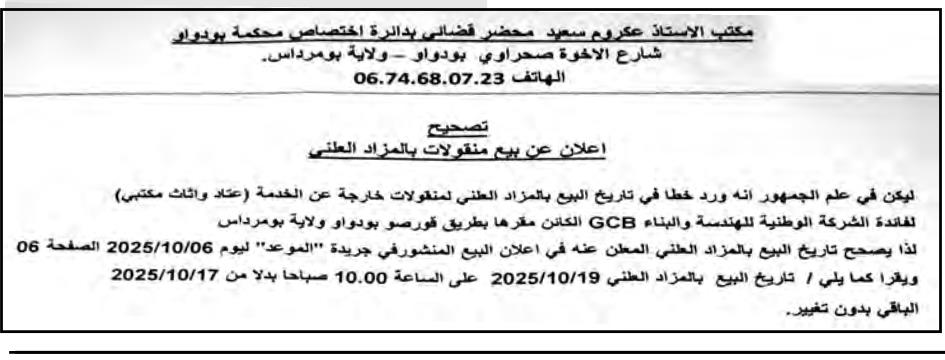 Il sera procédé à la vente au plus offrant et dernier enchérisseur le :