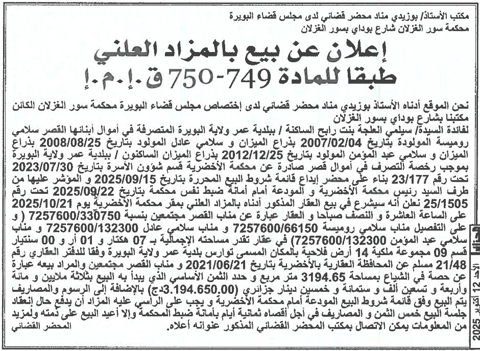 Il sera procédé à la vente au plus offrant et dernier enchérisseur le :