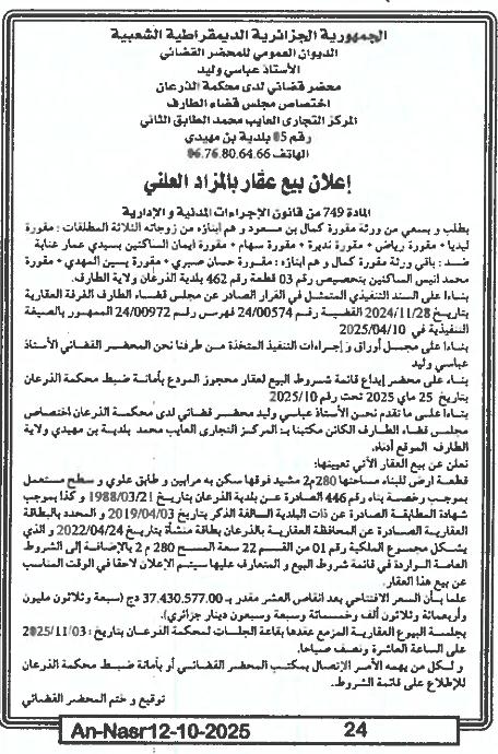 Il sera procédé à la vente au plus offrant et dernier enchérisseur le :