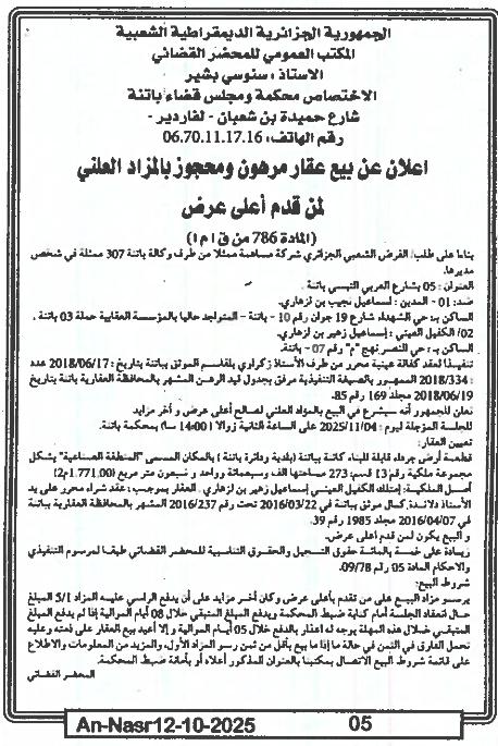 Il sera procédé à la vente au plus offrant et dernier enchérisseur le :