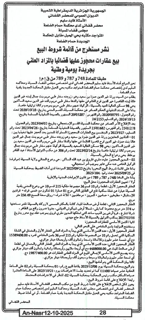 Il sera procédé à la vente au plus offrant et dernier enchérisseur le :