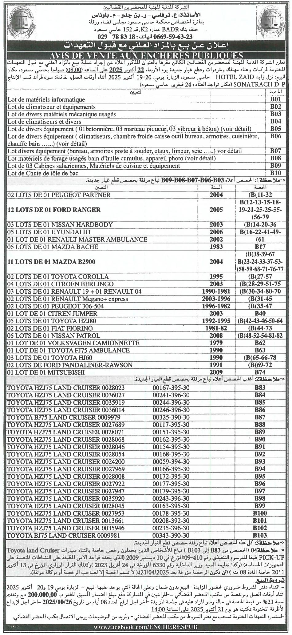 | Objet: Vente des divers lots | |