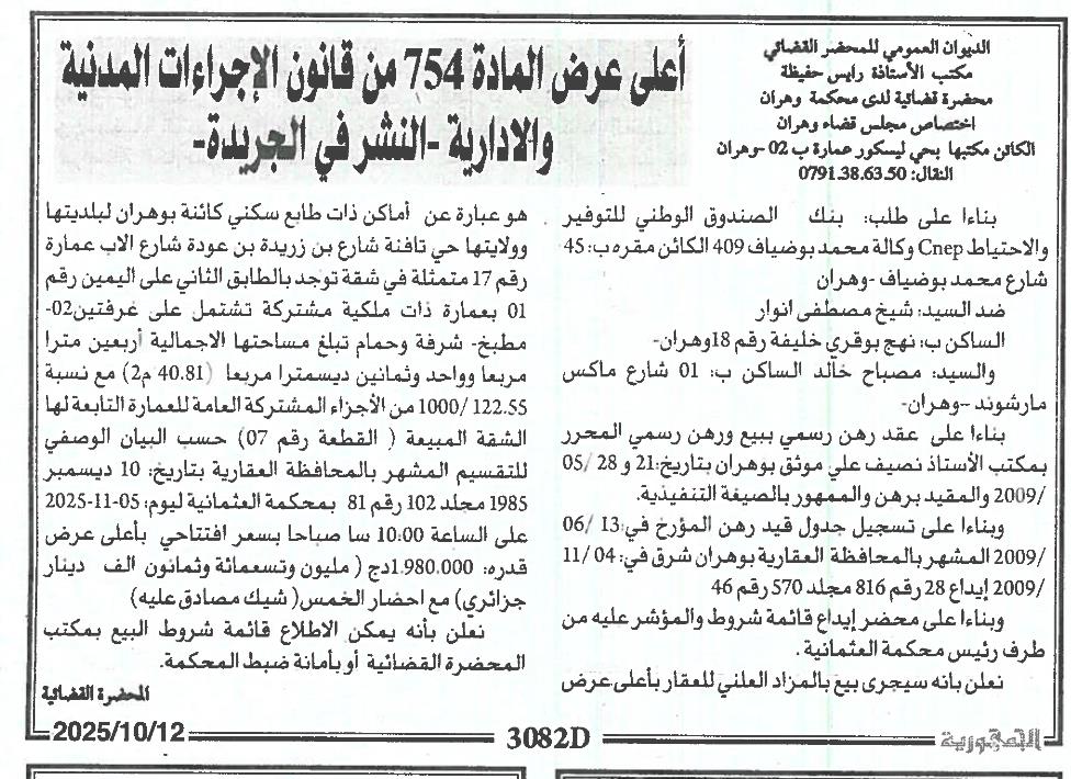 Il sera procédé à la vente au plus offrant et dernier enchérisseur le :