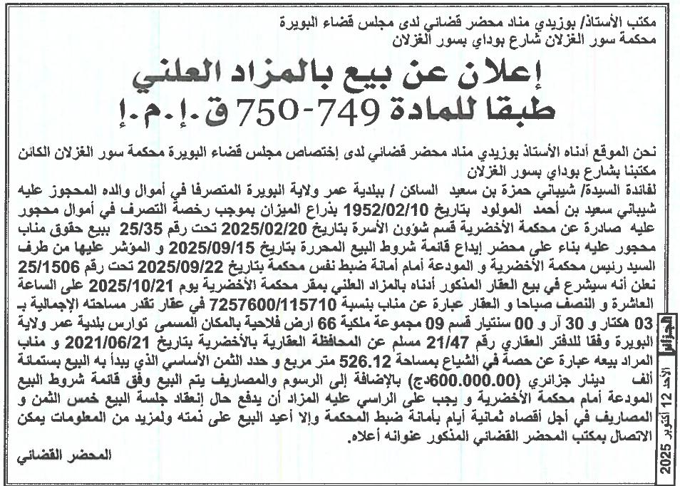 Il sera procédé à la vente au plus offrant et dernier enchérisseur le :