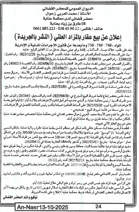 | Paru dans le journal : النصر | |