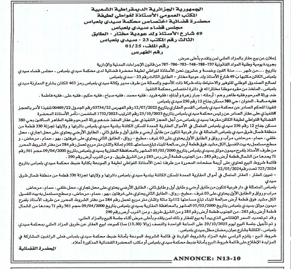 Il sera procédé à la vente au plus offrant et dernier enchérisseur le :