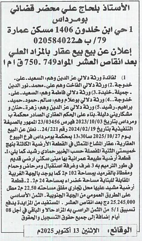 Il sera procédé à la vente au plus offrant et dernier enchérisseur le :