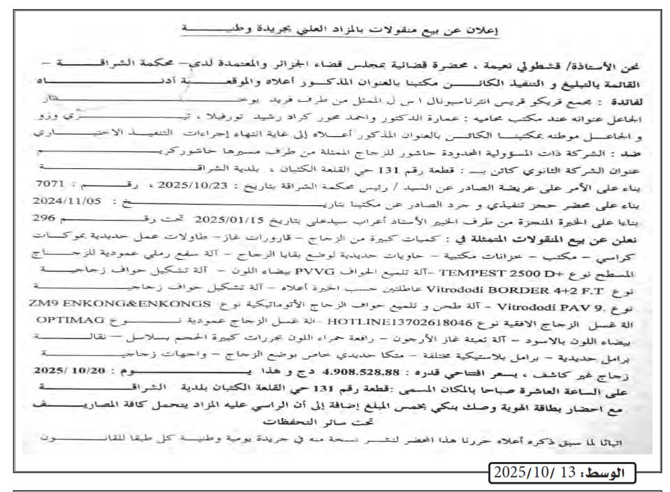 Il sera procédé à la vente au plus offrant et dernier enchérisseur le :