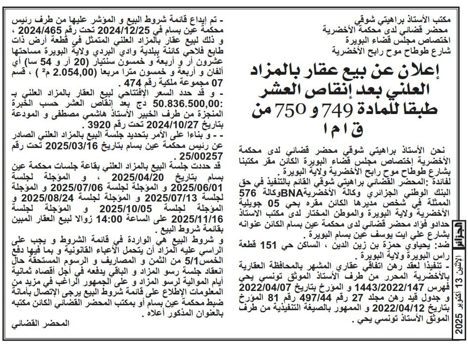 Il sera procédé à la vente au plus offrant et dernier enchérisseur le :