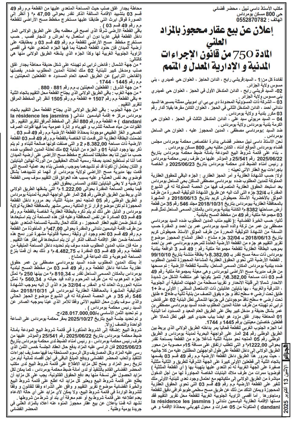 Il sera procédé à la vente au plus offrant et dernier enchérisseur le :