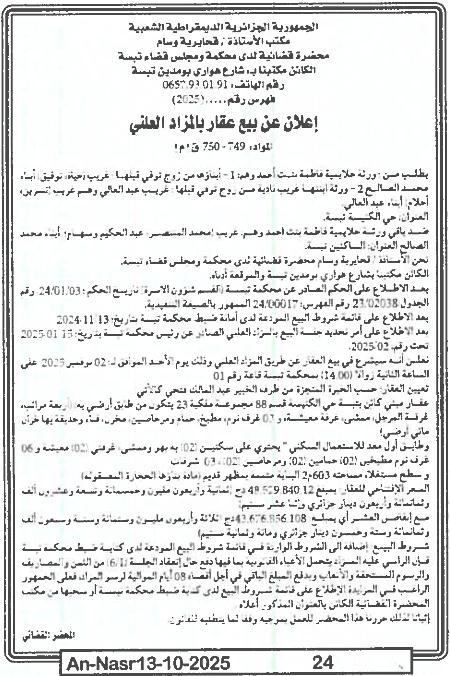 Il sera procédé à la vente au plus offrant et dernier enchérisseur le :