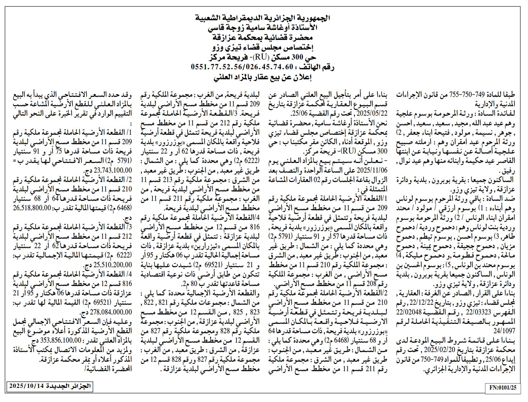 Il sera procédé à la vente au plus offrant et dernier enchérisseur le :