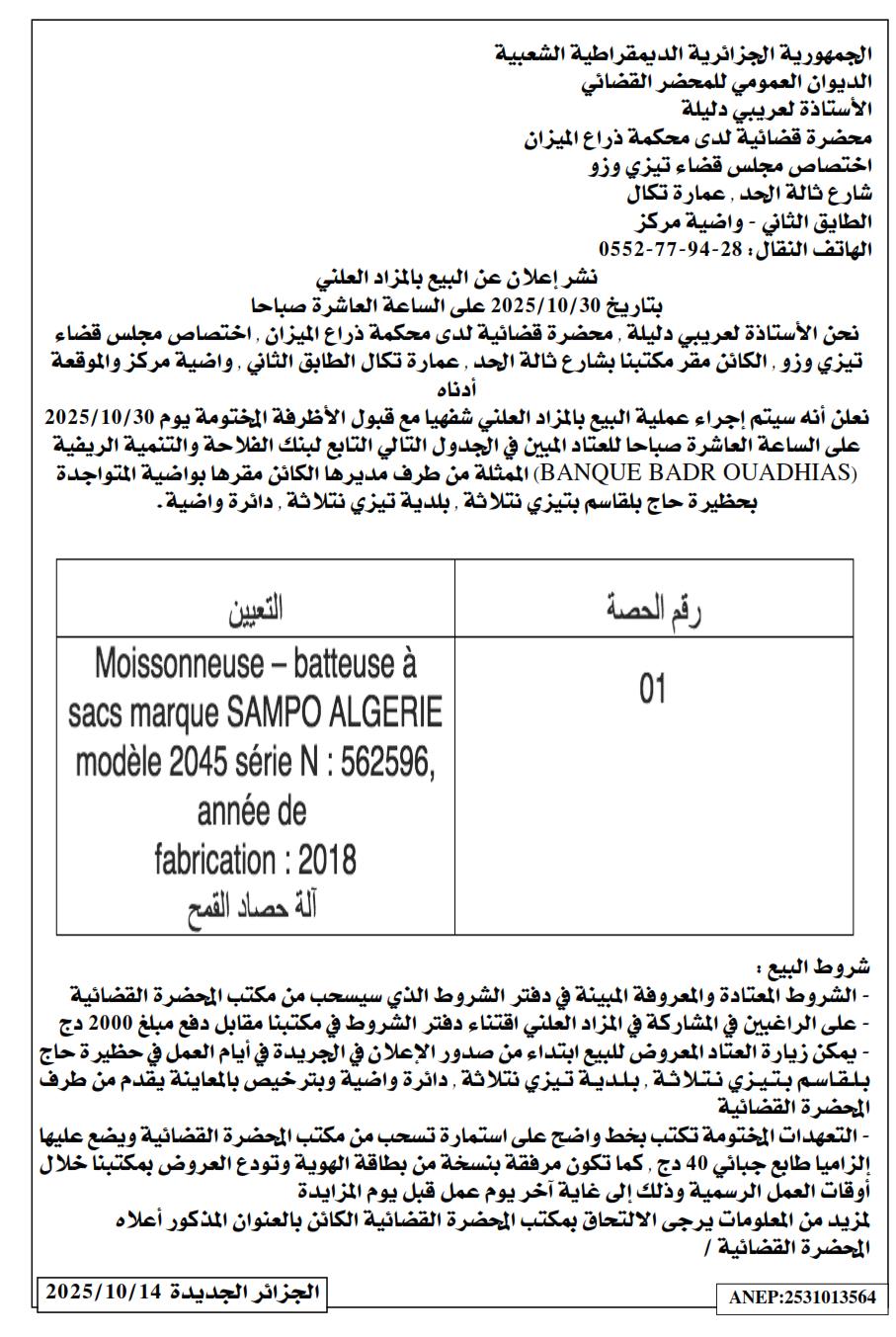 Il sera procédé à la vente au plus offrant et dernier enchérisseur le :