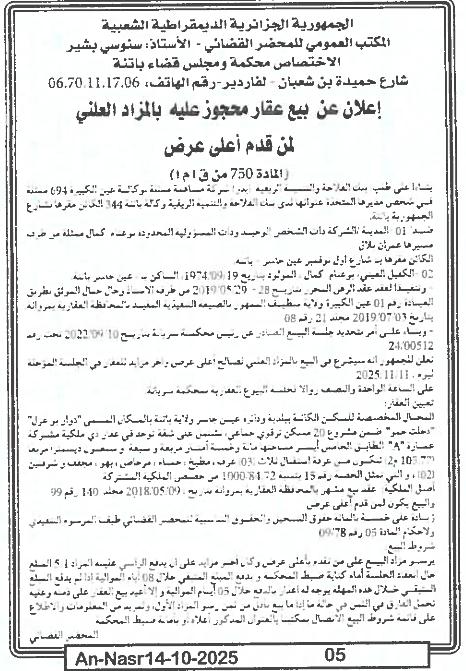 Il sera procédé à la vente au plus offrant et dernier enchérisseur le :