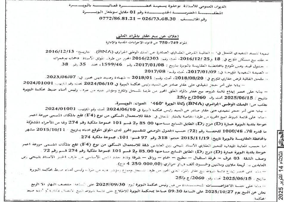 Il sera procédé à la vente au plus offrant et dernier enchérisseur le :