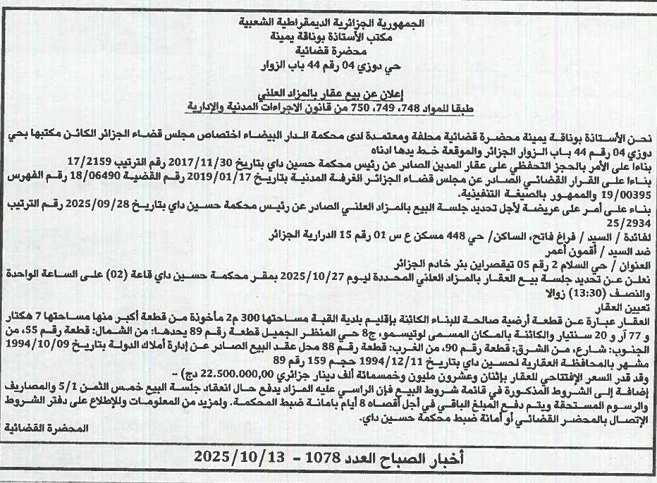Il sera procédé à la vente au plus offrant et dernier enchérisseur le :