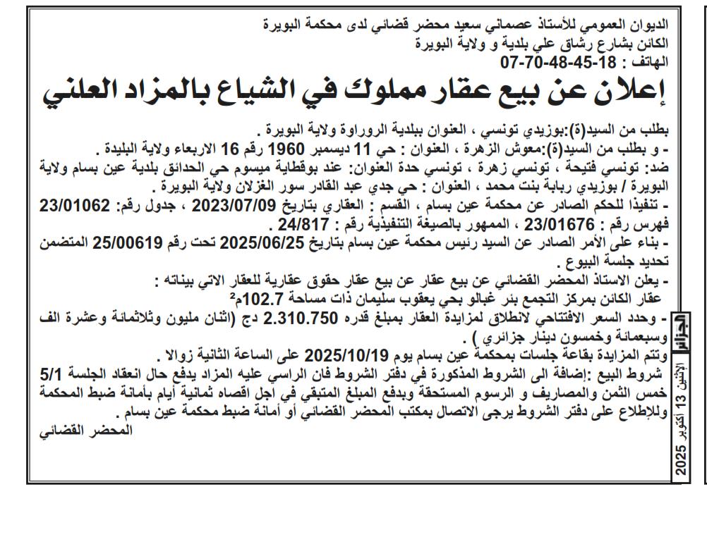 Il sera procédé à la vente au plus offrant et dernier enchérisseur le :