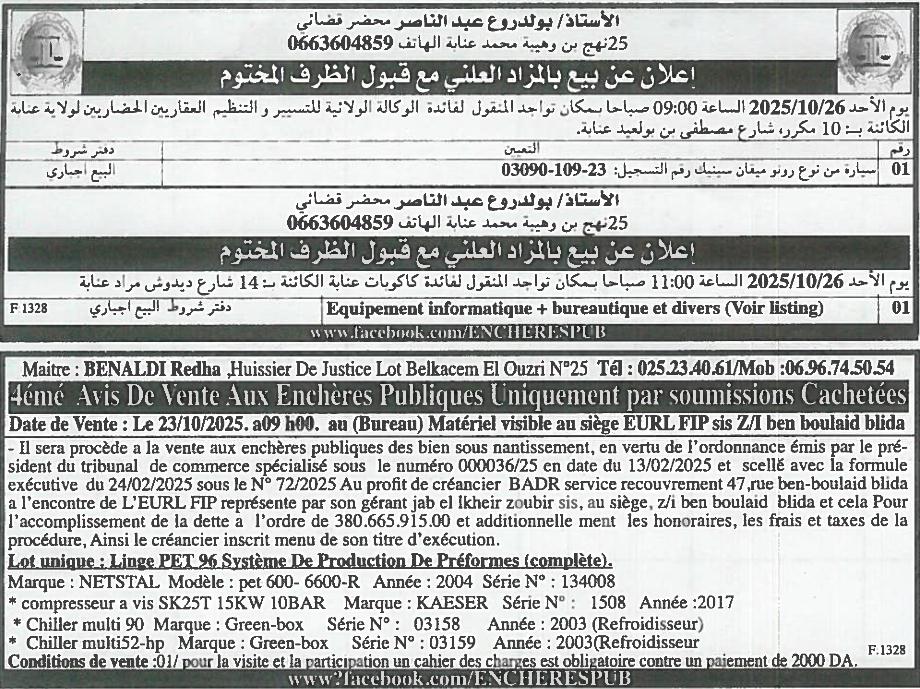 Il sera procédé à la vente au plus offrant et dernier enchérisseur le :