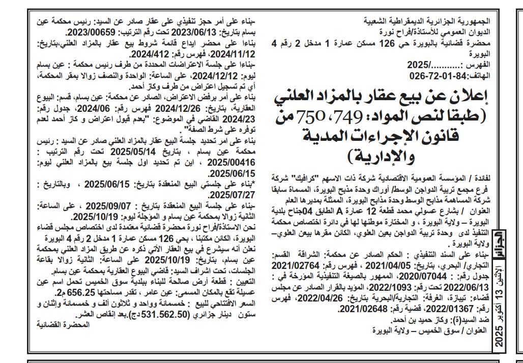 | Paru dans le journal : الجزائر | |