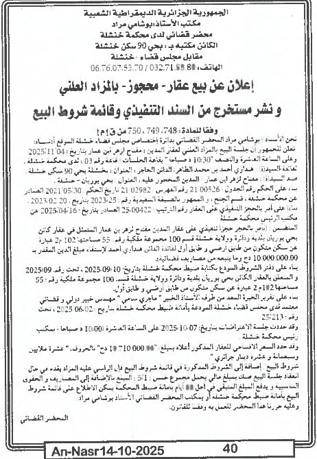 Il sera procédé à la vente au plus offrant et dernier enchérisseur le :