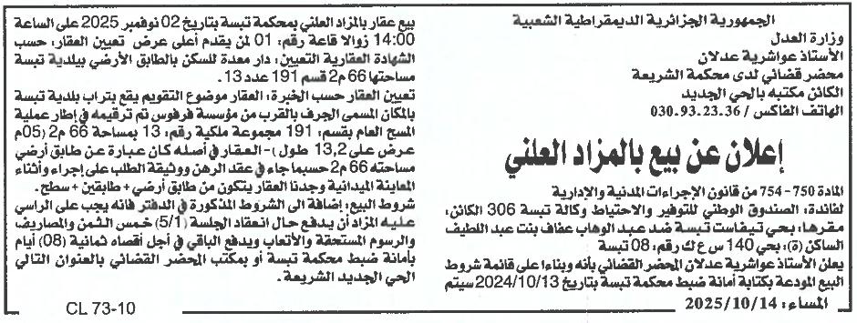 Il sera procédé à la vente au plus offrant et dernier enchérisseur le :