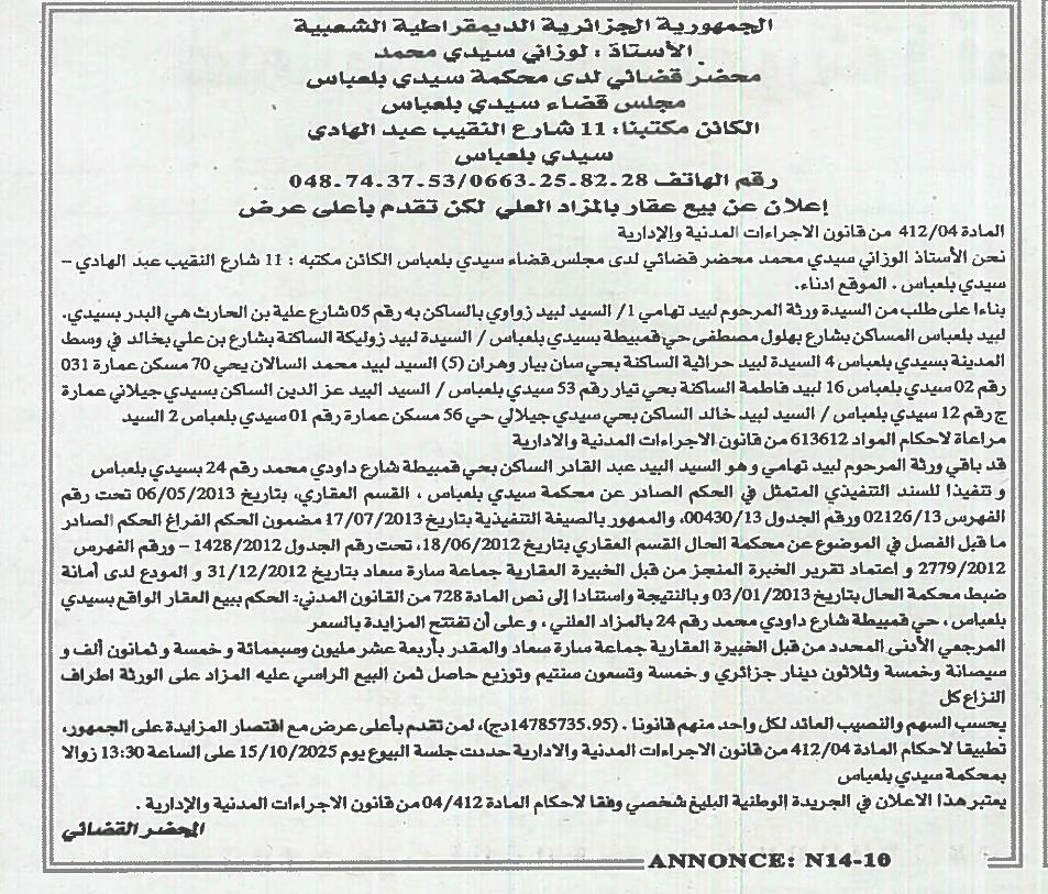 Il sera procédé à la vente au plus offrant et dernier enchérisseur le :