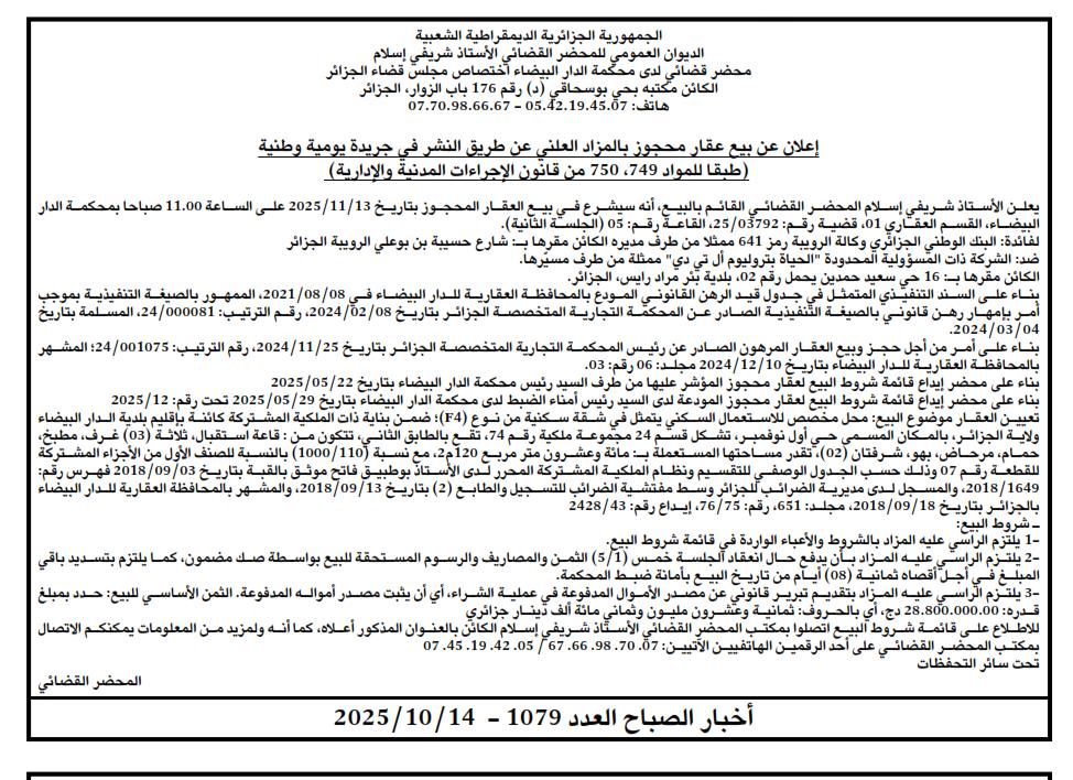 Il sera procédé à la vente au plus offrant et dernier enchérisseur le :