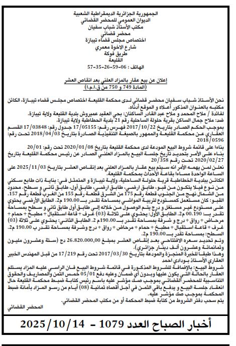 | Paru dans le journal : اخبار الصباح | |