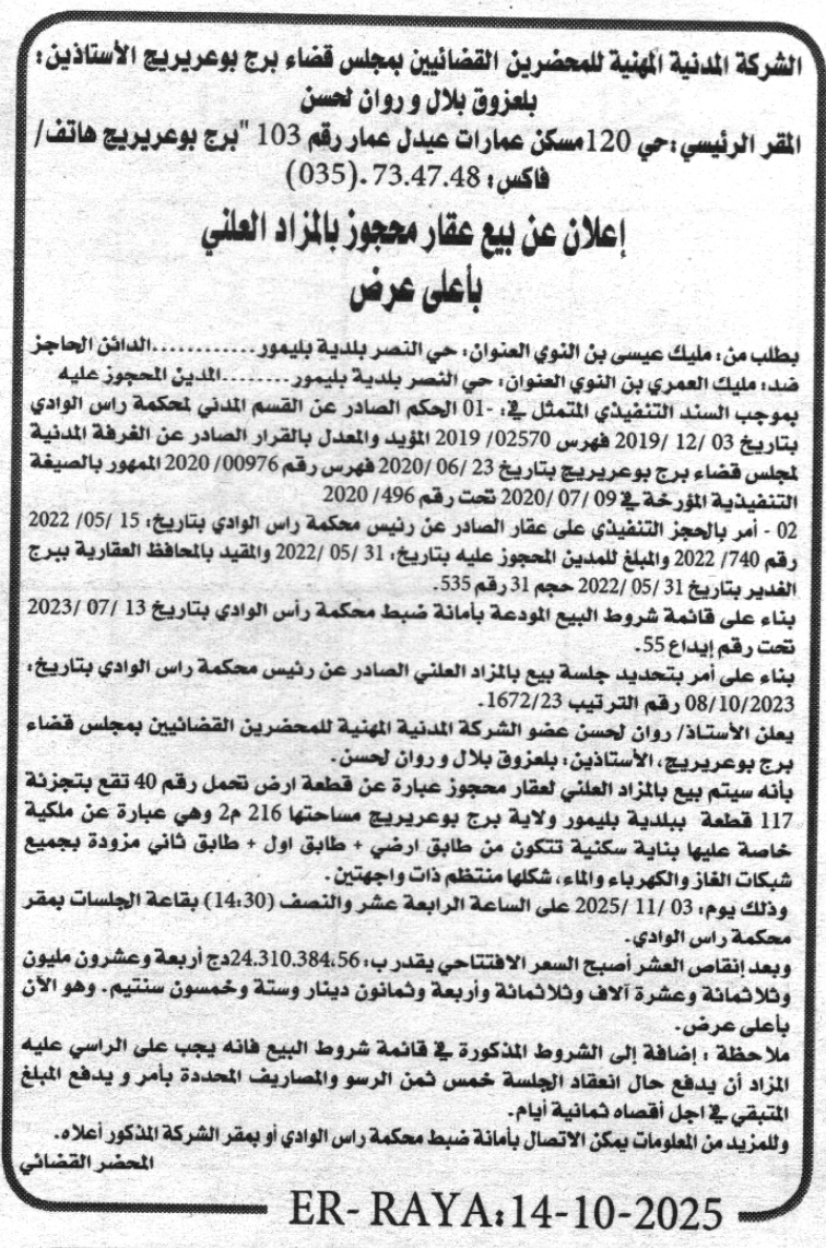Il sera procédé à la vente au plus offrant et dernier enchérisseur le :