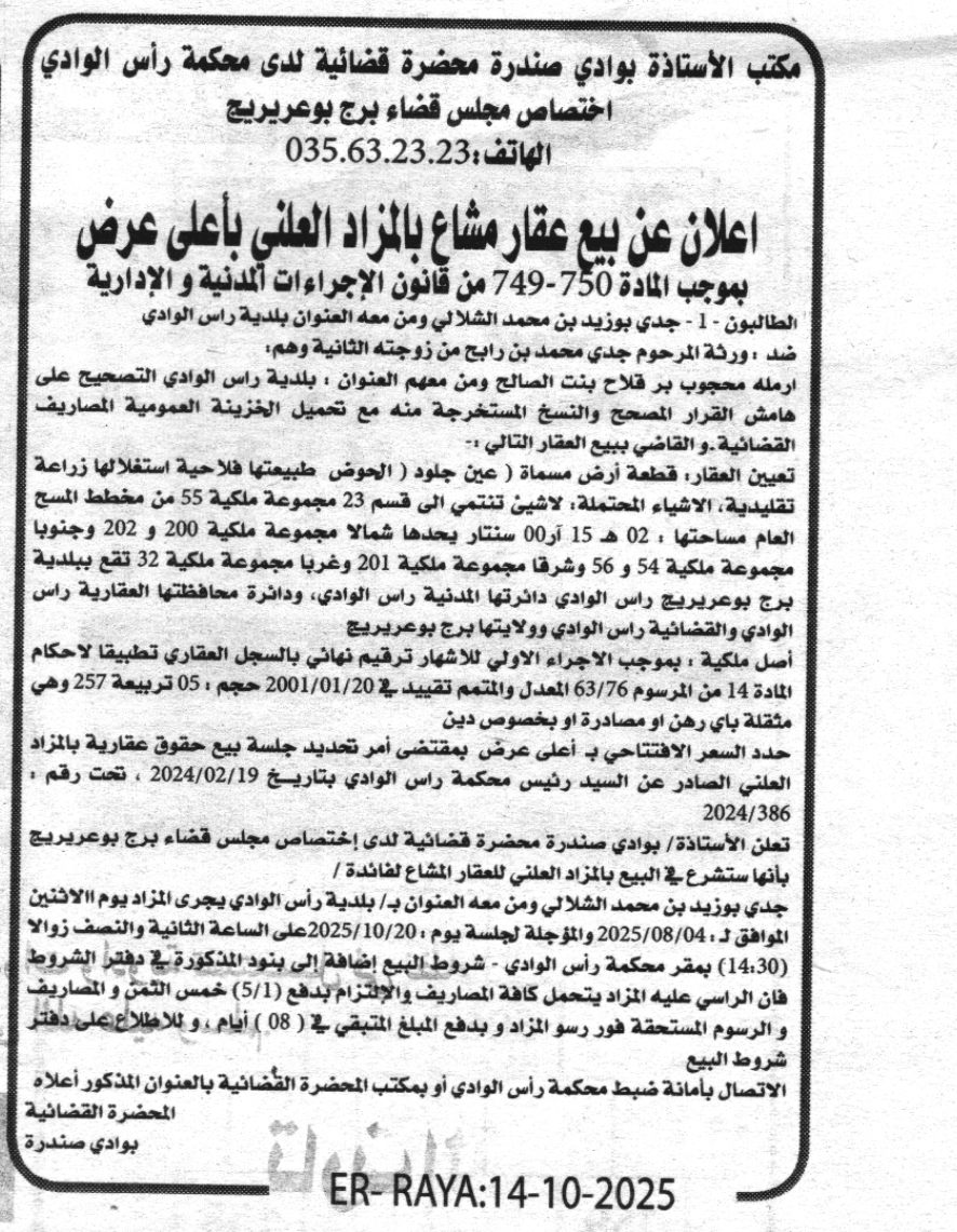 Il sera procédé à la vente au plus offrant et dernier enchérisseur le : 21/10/2025';